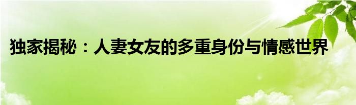 本文将深入探讨“人妻女友”这一特殊关键词背后的多重身份和情感世界。我们试图揭开这一角色在日常生活中的真实面貌,理解她们在多重身份下的压力与喜悦,并探索如何更好地理解和支持她们。