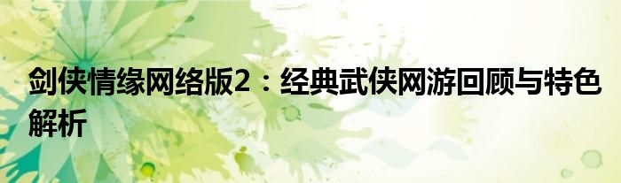 以上就是关于《剑侠情缘网络版2》的回顾与特色解析,希望能让您对这款游戏有更深入的了解。