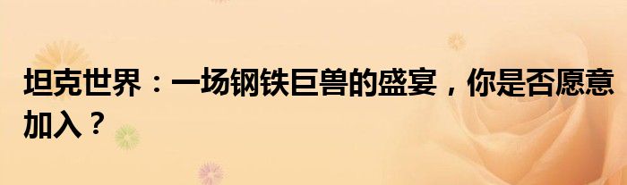 坦克世界:一场钢铁巨兽的盛宴,你是否愿意加入?