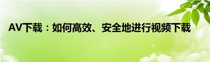 AV下载是视频下载的一种常见方式,由于其便捷性和灵活性,成为许多网友获取视频资源的主要途径。然而,如何高效、安全地进行AV下载,对于许多新手来说是一个挑战。