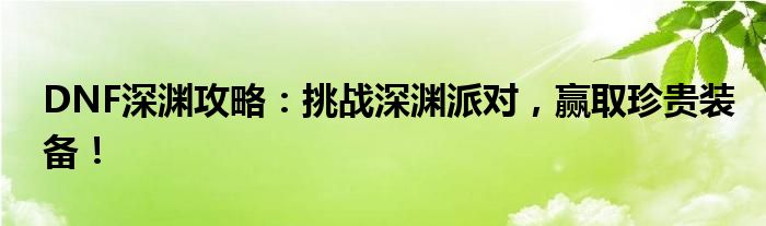 DNF深渊攻略:挑战深渊派对,赢取珍贵装备!