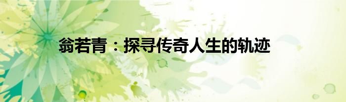 翁若青:探寻传奇人生的轨迹