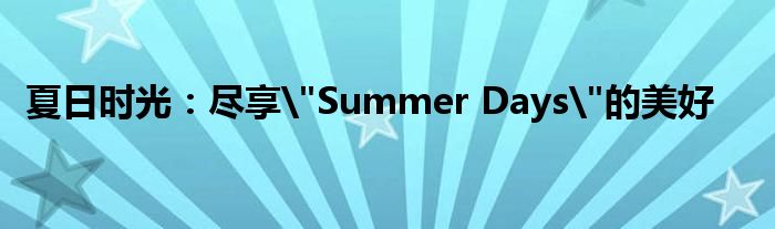 在这个充满活力和魅力的夏日时光里,让我们尽享“Summer Days”的美好,感受这个季节的独特魅力。