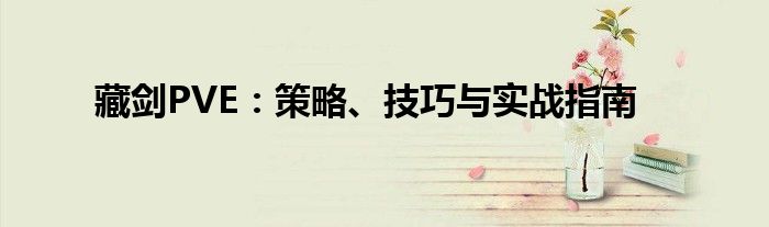 通过阅读本文,玩家将全面了解藏剑PVE的策略、技巧和实战指南,提升游戏水平,享受更好的游戏体验。