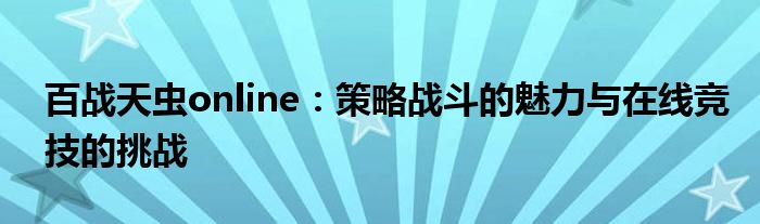 百战天虫online:策略战斗的魅力与在线竞技的挑战
