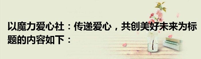 以魔力爱心社:传递爱心,共创美好未来为标题的内容如下: