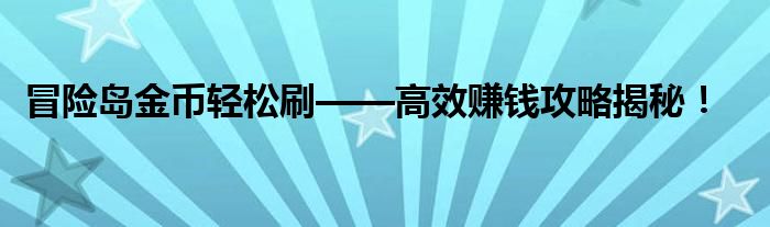 冒险岛金币轻松刷——高效赚钱攻略揭秘!