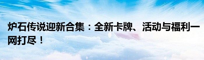 本文将详细介绍炉石传说中的迎新合集,内容涵盖全新卡牌、特色活动以及为新手玩家准备的丰厚福利。让新玩家更快地融入炉石传说的世界,提升游戏体验。