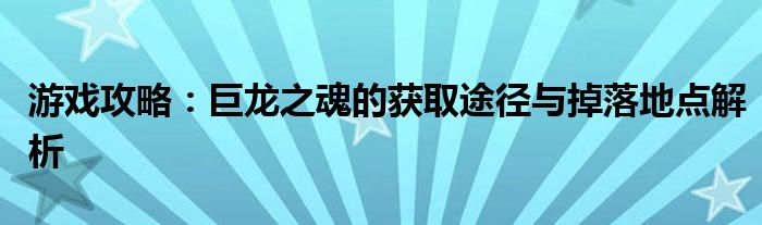 游戏攻略:巨龙之魂的获取途径与掉落地点解析