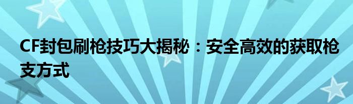 CF封包刷枪技巧大揭秘:安全高效的获取枪支方式