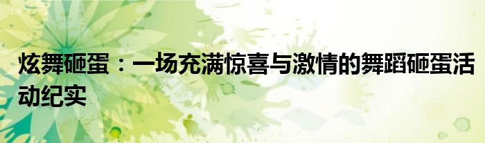 炫舞砸蛋,是一场融合舞蹈与游戏的盛宴,一次充满惊喜与挑战的激情体验。这是一场集激情、欢乐、互动与一体的活动,让参与者感受到舞蹈的魅力和游戏的乐趣。