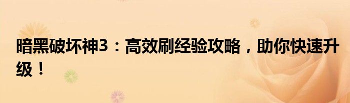 通过以上介绍,相信大家对如何在暗黑破坏神3中高效刷经验有了更全面的了解。希望这些攻略能帮助你快速升级,享受游戏的乐趣!