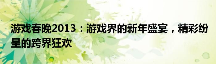 总之,"游戏春晚2013"将为你带来一场精彩纷呈的跨界狂欢。让我们共同期待这场全球性的游戏盛宴,共同迎接新的一年。