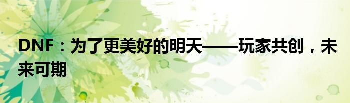 DNF的明天,需要我们共同守护。让我们一起努力,为了那个更美好的明天,共创辉煌!