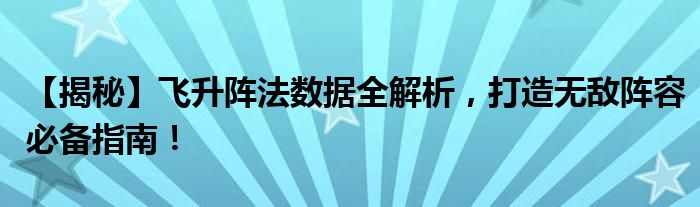 【揭秘】飞升阵法数据全解析,打造无敌阵容必备指南!