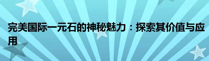 以上是关于“完美国际一元石的神秘魅力:探索其价值与应用”的探讨,希望对您有所帮助。
