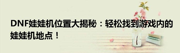 DNF娃娃机位置大揭秘:轻松找到游戏内的娃娃机地点!