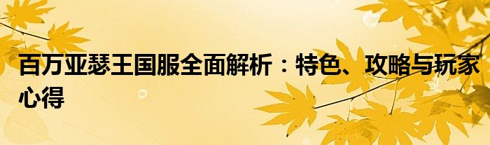 百万亚瑟王国服全面解析:特色、攻略与玩家心得