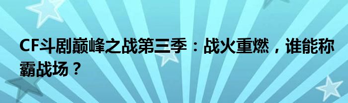 CF斗剧巅峰之战第三季:战火重燃,谁能称霸战场?