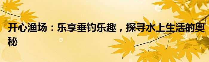 开心渔场:乐享垂钓乐趣,探寻水上生活的奥秘