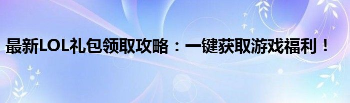 最新LOL礼包领取攻略:一键获取游戏福利!