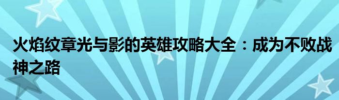 火焰纹章光与影是一款非常优秀的游戏,想要成为不败战神,需要熟悉游戏玩法,掌握角色培养、战斗策略、资源获取等关键要素。希望本攻略能帮助到你,祝你在火焰纹章光与影的世界中勇夺胜利!