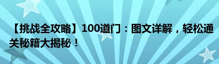 【挑战全攻略】100道门:图文详解,轻松通关秘籍大揭秘!