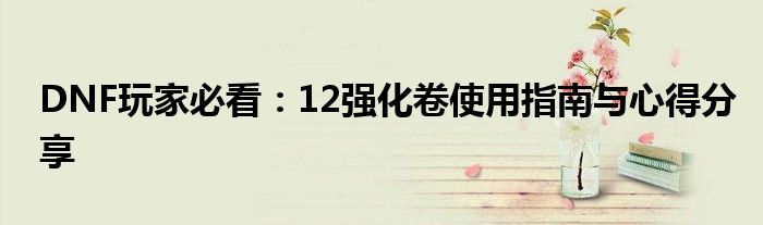 结语:通过本文的介绍,相信玩家们对DNF中的12强化卷有了更深入的了解和掌握。希望这些知识和技巧能够帮助大家在游戏中取得更好的成绩和体验。