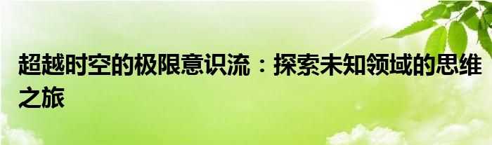 总之,“极限意识流”是一个充满神秘和魅力的概念。通过探索这一领域,我们可以更好地理解自我和世界的本质,进一步拓宽人类认知的边界。让我们一同踏上这场超越时空的极限思维之旅吧!