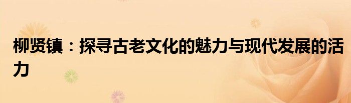 柳贤镇:探寻古老文化的魅力与现代发展的活力