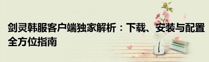剑灵韩服客户端独家解析:下载、安装与配置全方位指南