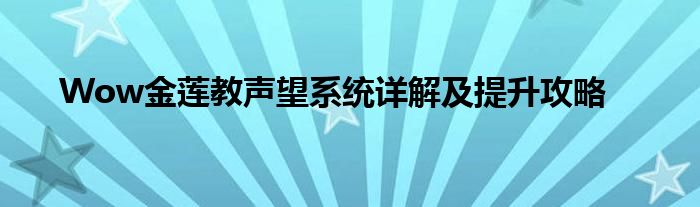Wow金莲教声望系统是游戏内的一个重要机制,通过参与游戏中的各种活动和任务,玩家可以提升自己的金莲教声望等级。声望等级的提升不仅可以解锁独特的奖励和特权,还可以获得更多的游戏体验。本文将详细介绍Wow金莲教声望系统的相关知识。