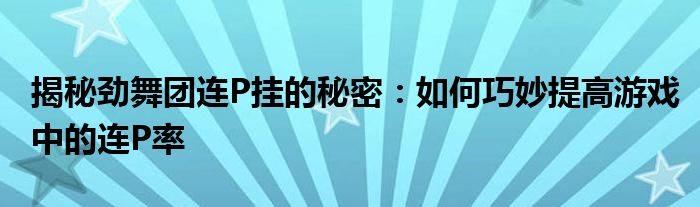 本文将为大家揭示劲舞团连P挂的秘密,帮助玩家们在游戏中巧妙提高连P率,获得更好的游戏体验。