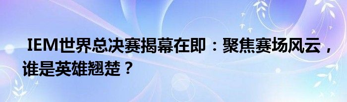 IEM世界总决赛揭幕在即:聚焦赛场风云,谁是英雄翘楚?