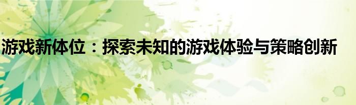 游戏新体位:探索未知的游戏体验与策略创新