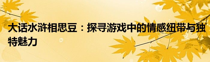 大话水浒相思豆:探寻游戏中的情感纽带与独特魅力