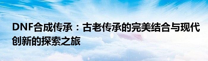 DNF合成传承:古老传承的完美结合与现代创新的探索之旅