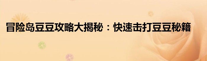 通过以上介绍的内容我们可以看出冒险岛游戏中的豆豆并不是很容易被打掉的而且也需要一定的技巧和策略才能完成任务希望以上攻略能帮助大家更好地享受游戏带来的乐趣。
