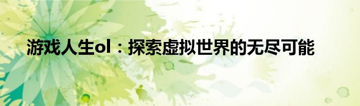 游戏人生ol:探索虚拟世界的无尽可能