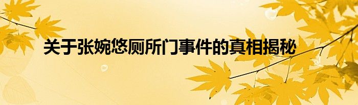 近期,网络上流传着关于张婉悠的一些争议性话题,其中最为引人关注的就是所谓的“张婉悠厕所门全套”。今天,我们将为您揭开这一事件的真相,带您了解事件的来龙去脉。