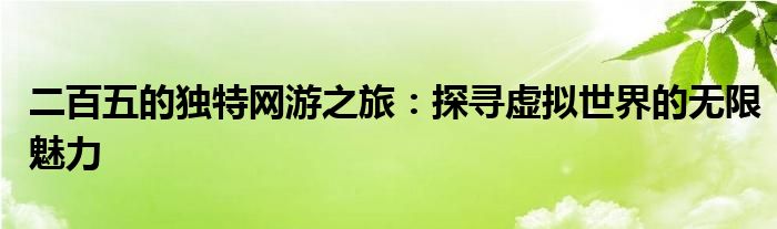 二百五的独特网游之旅:探寻虚拟世界的无限魅力