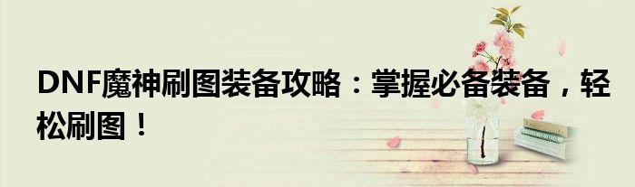 DNF魔神刷图装备攻略:掌握必备装备,轻松刷图!