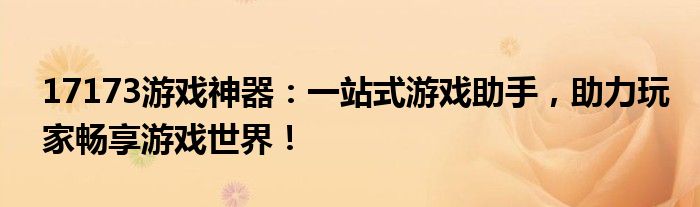17173游戏神器:一站式游戏助手,助力玩家畅享游戏世界!