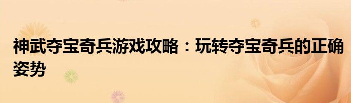 神武夺宝奇兵游戏攻略:玩转夺宝奇兵的正确姿势
