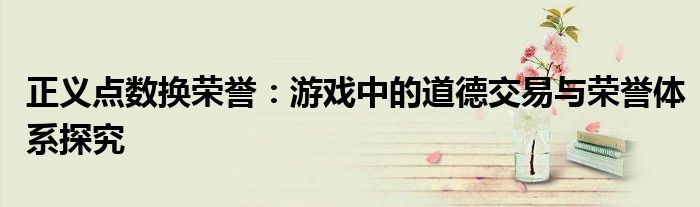 正义点数换荣誉:游戏中的道德交易与荣誉体系探究