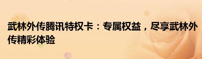武林外传腾讯特权卡:专属权益,尽享武林外传精彩体验