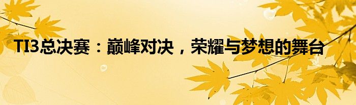 每年的电子竞技盛宴,TI3总决赛无疑是其中最受瞩目的一场。作为最高水平的竞技舞台,这里汇聚了全球最优秀的电子竞技选手和战队,他们在这里展开了一场又一场精彩绝伦的较量。今年的TI3总决赛更是备受期待,因为这是一场巅峰对决,每一位参赛选手都渴望在这里证明自己的实力,实现自己的荣耀与梦想。