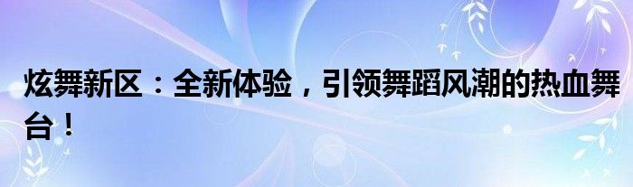 炫舞新区:全新体验,引领舞蹈风潮的热血舞台!