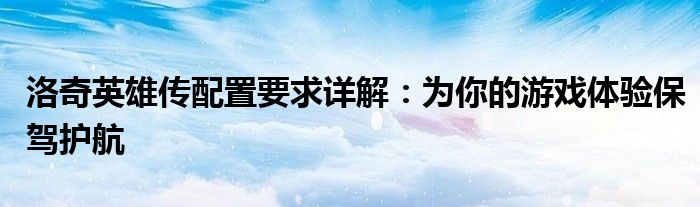 洛奇英雄传配置要求详解:为你的游戏体验保驾护航