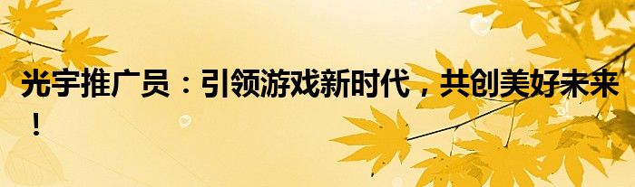 总之,光宇推广员是引领游戏新时代的先锋,他们通过不断的努力和创新,为玩家带来更好的游戏体验。让我们一起加入他们的行列,共同创造美好的游戏未来!